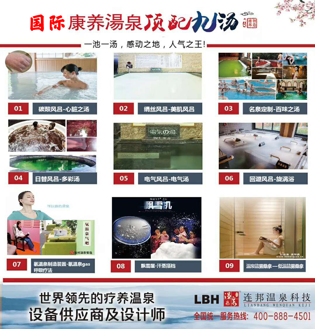 人工溫泉機專家表明,不要覺得天熱泡溫泉會中暑,其實夏天泡溫泉恰恰是一種絕佳的解暑降溫方法。人浸泡在溫熱的泉水里,毛孔會漸漸打開,體內的熱量就能釋放出來,經過反復浸泡,全身就像吃了薄荷糖,能夠徹底消除身體的熾熱,治標治本。相反,如果人直接泡在涼水里,毛孔遭到影響會馬上閉合,雖然皮膚會感到涼快,但體內的熱無法徹底排出。