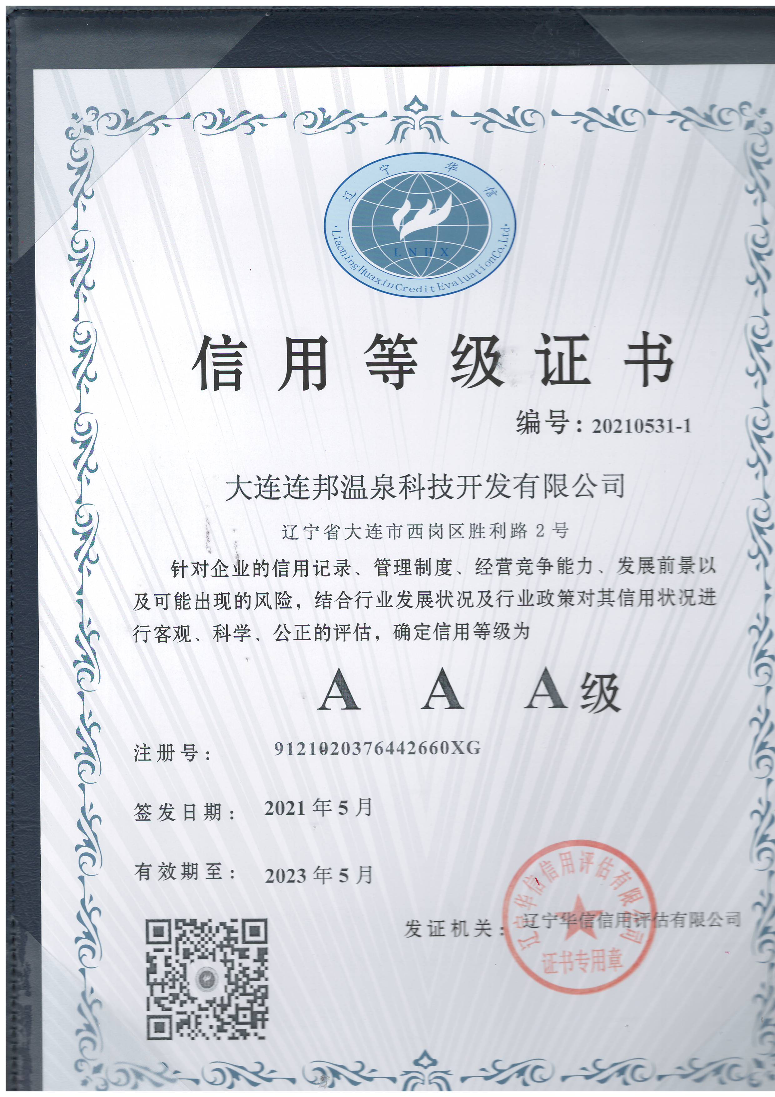 連邦溫泉榮獲AAA級信用企業等級證書